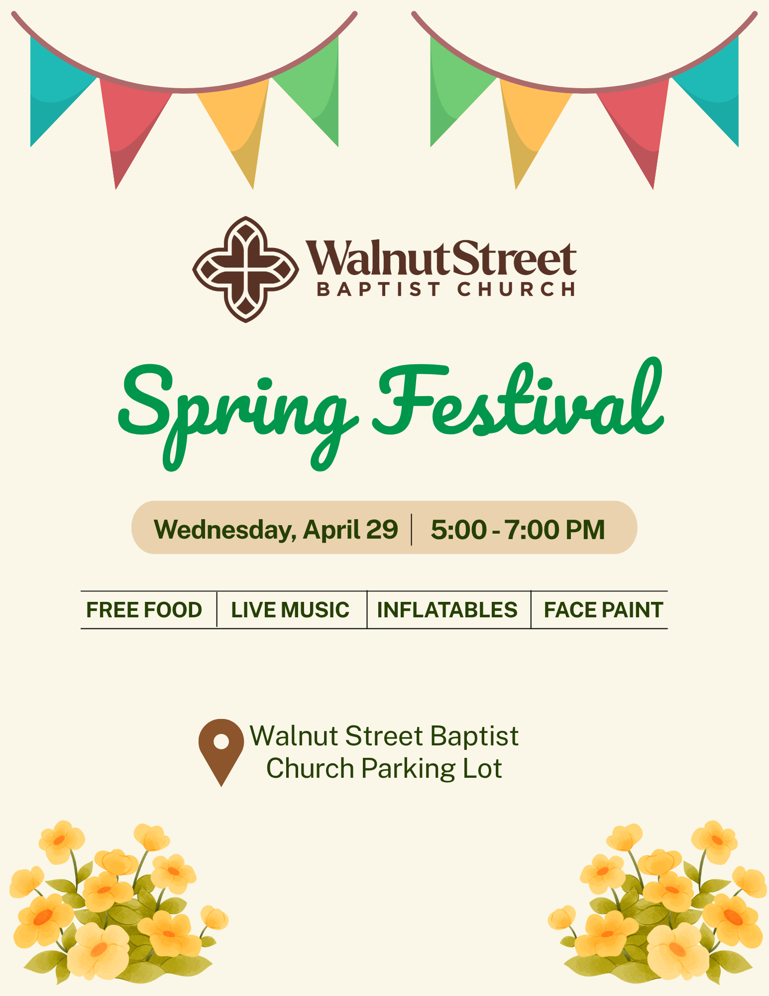 SPRING FESTIVAL - WEDNESDAY, 5-7 PM - CHURCH PARKING LOT -